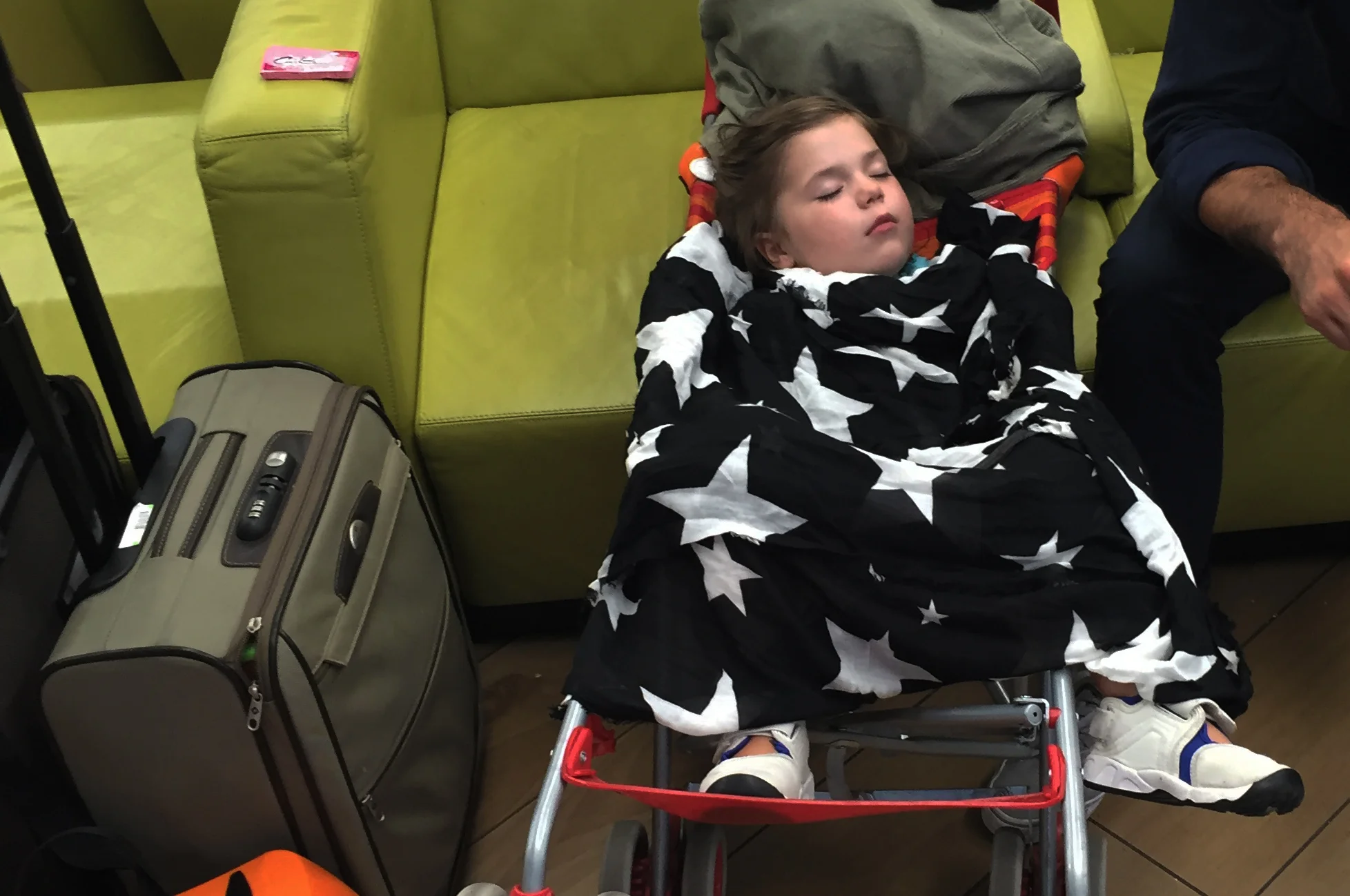 It replaced the Trunki as Olivia’s chosen ride, pulled through long glossy expanses of terminal floor by the tattooed arm of her father.
