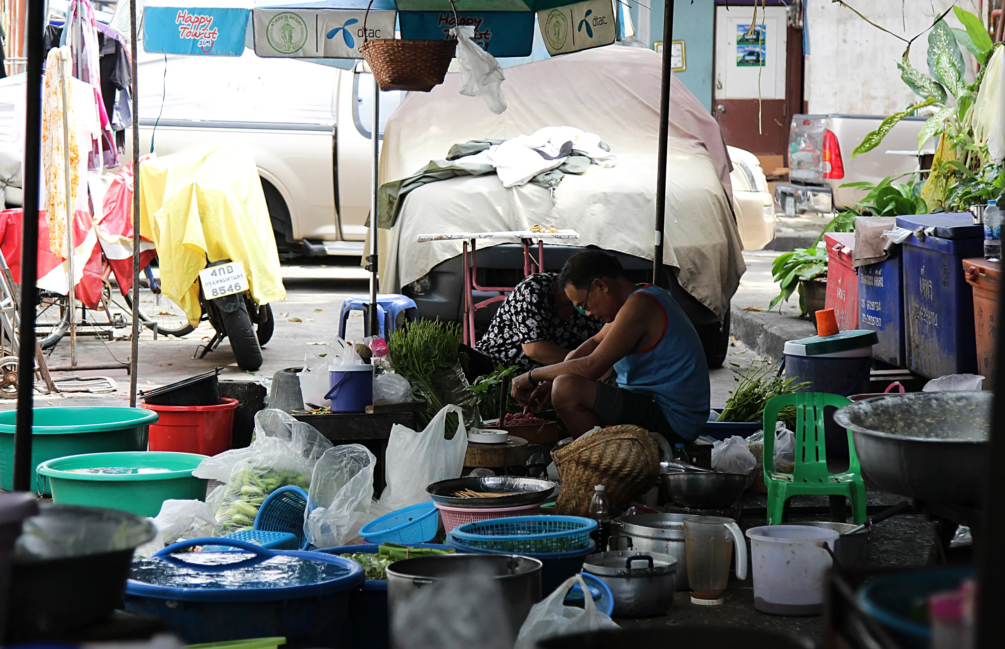 And here, in Bangkok, we have the most theatrical food of all. Because in the capital of street food, the lantern-strung, neon-laced roads set the stage for a constant procession of wheeled carts boasting some of the most incredible dishes in the world. They don’t just line the main hyperactive drag of the Khao San Road, but also its quieter parallel street of Rambuttri. They're dotted along every soi and on every corner of every neighbourhood. Anywhere you look, there’s a lady juicing alien-looking fruits or an old man grilling skewers of satay or a mother frying up pad thai to order as her two year old sits in a chair behind her, bottle in mouth and teddy in hand. Hawkers wheel their wares along under white hot lights, shouting their menus rather than printing them. Everything is cheap, so nothing is out of bounds. We can afford to take risks.