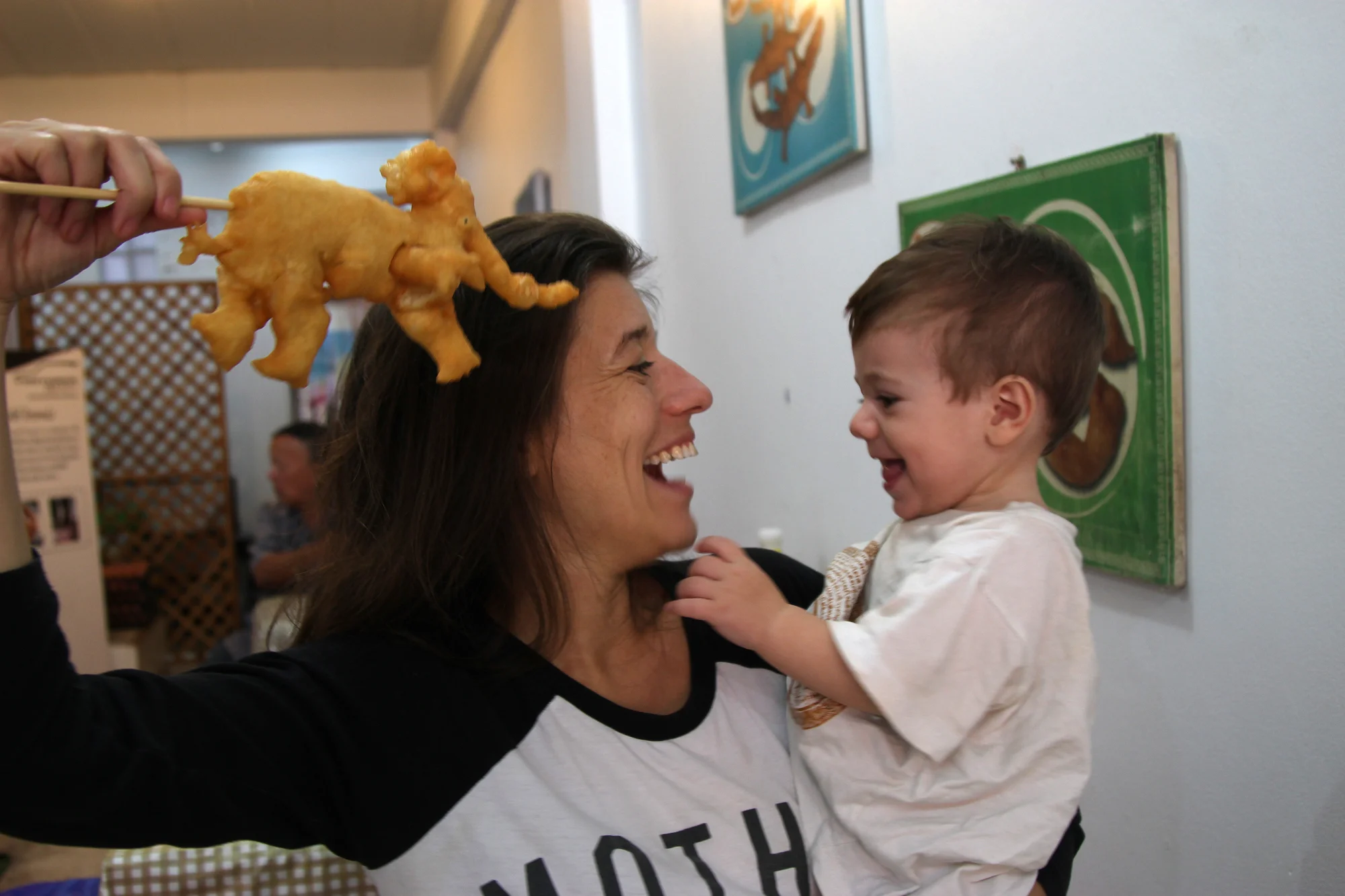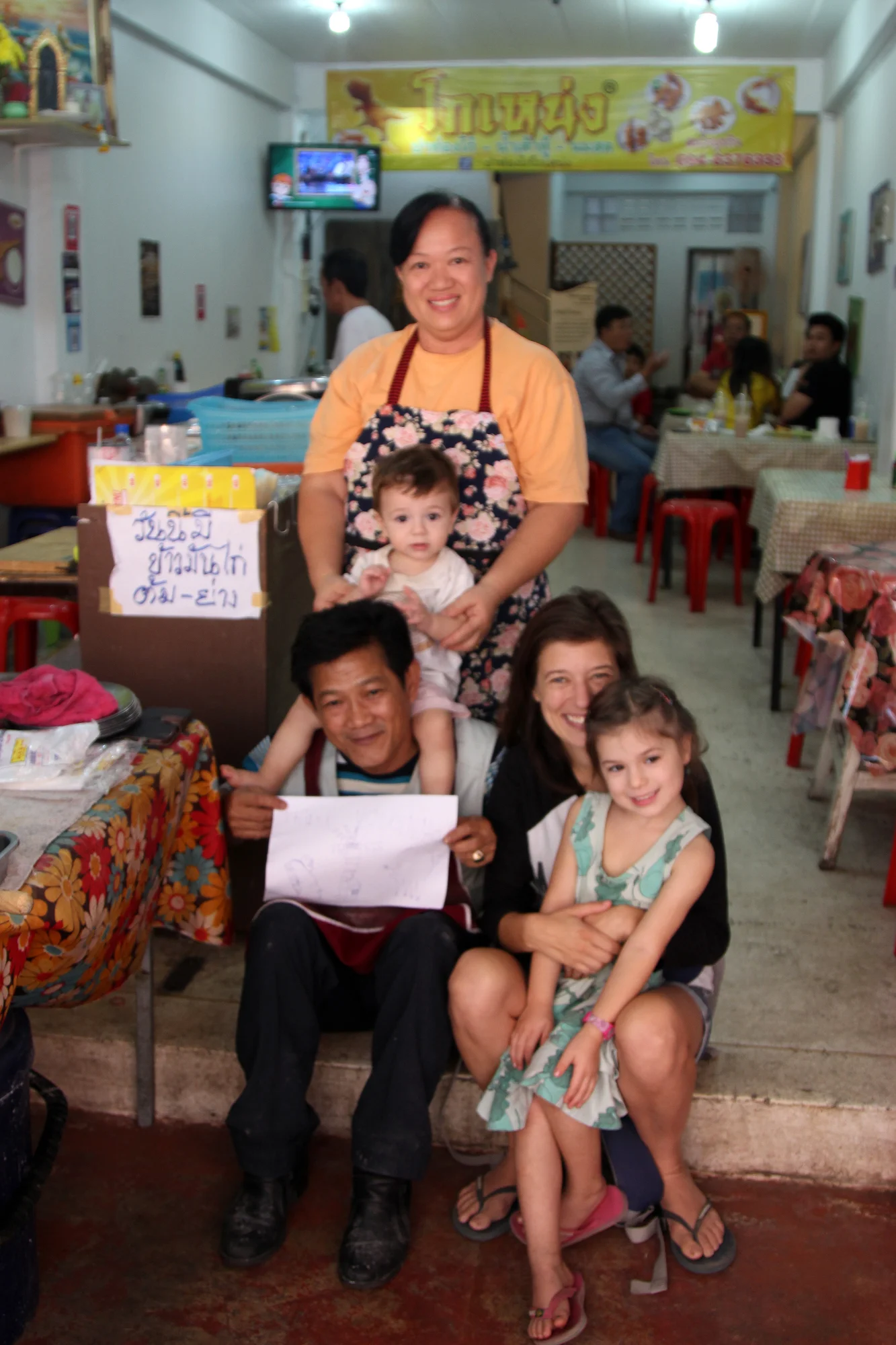 Our table was right next to the action, and while her little brother napped, Olivia bounded between members of staff, testing out her new-found confidence to ask questions about everything from why-do-you-need-so-many-eggs to why-cant-I-touch-that-hot-thing. This kid has had a rough time, bless her, being grabbed and prodded at random since we left London. So however much we've tried to explain the cultural differences, she's still understandably wary a lot of the time. Here though, the staff practically adopted her and it was so good to see her comfortable, happy and interacting with strangers. When we return a week later with Lori, she bounces in as if she's at a family reunion with a joyful shout of "I'm back!" and they welcome her into the fold again. She's at home.