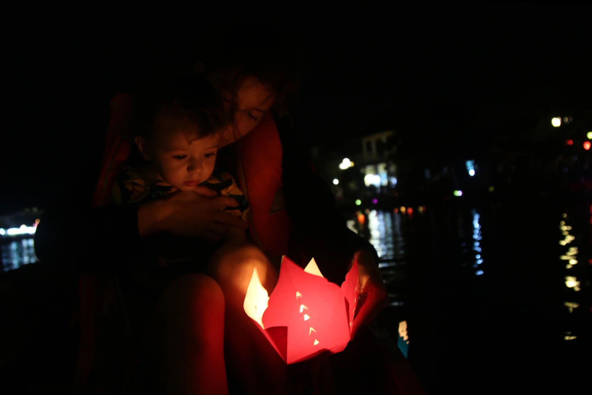 We're in Hoi An right now, halfway down Vietnam and halfway through our big adventure. And tomorrow you turn one. One whole year since you came barrelling into our lives. We went for dinner tonight at a little place down by the river, and I took you off in my arms and just stood with you on the waterfront, watching the reflections, holding you tight, trying not to cry.