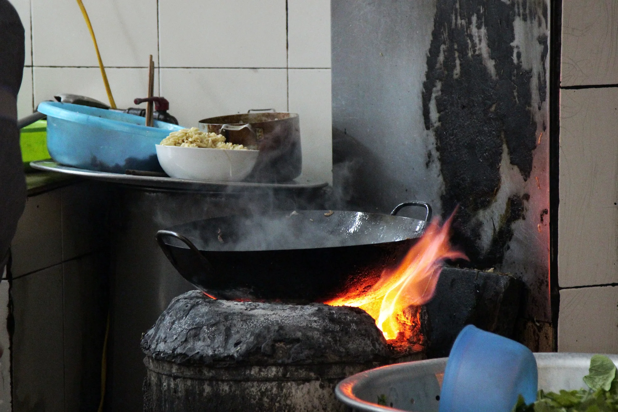 Little camping burners, topped with woks full of frying vegetable oil, give birth to the crispiest spring rolls. A bunch of wood from an old broken chair burns on the pavement, smoking a pork belly dripping fat onto the grey asphalt. An old engine oil can, opened on one side with a piece of metal mesh on top, becomes the perfect barbecue. Saucepans filled with broths bubbling here and there are getting ready to comfort their owners like warm cuddles, while steamers sit above them, full of juicy dumplings bursting with plump shrimp and fresh herbs. The smell of every sort of pickle emanates from open glass jars, which have been used and re-used for years for the same delicious job.