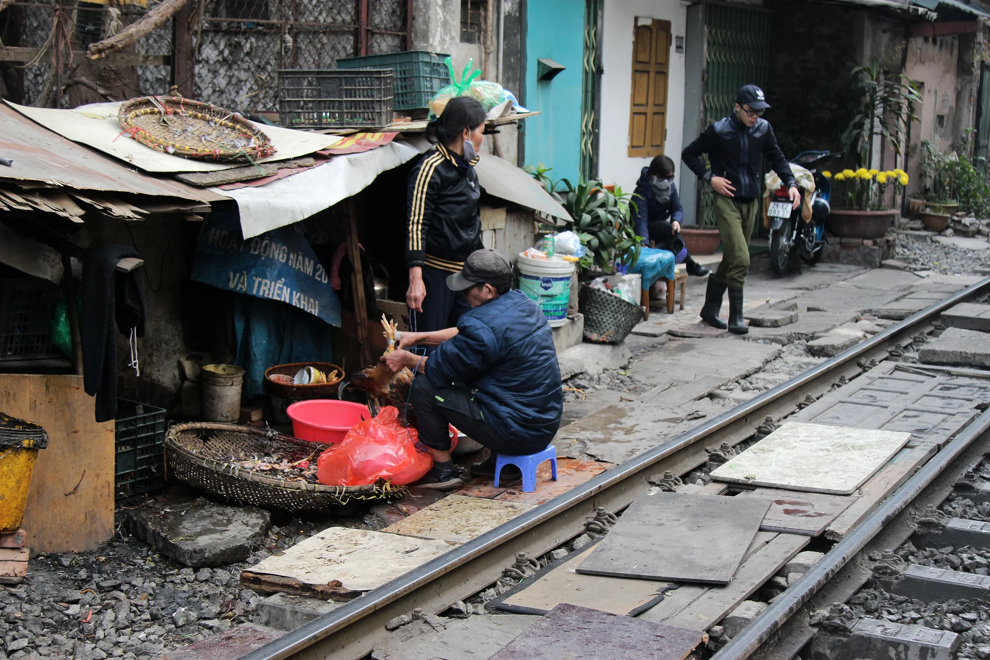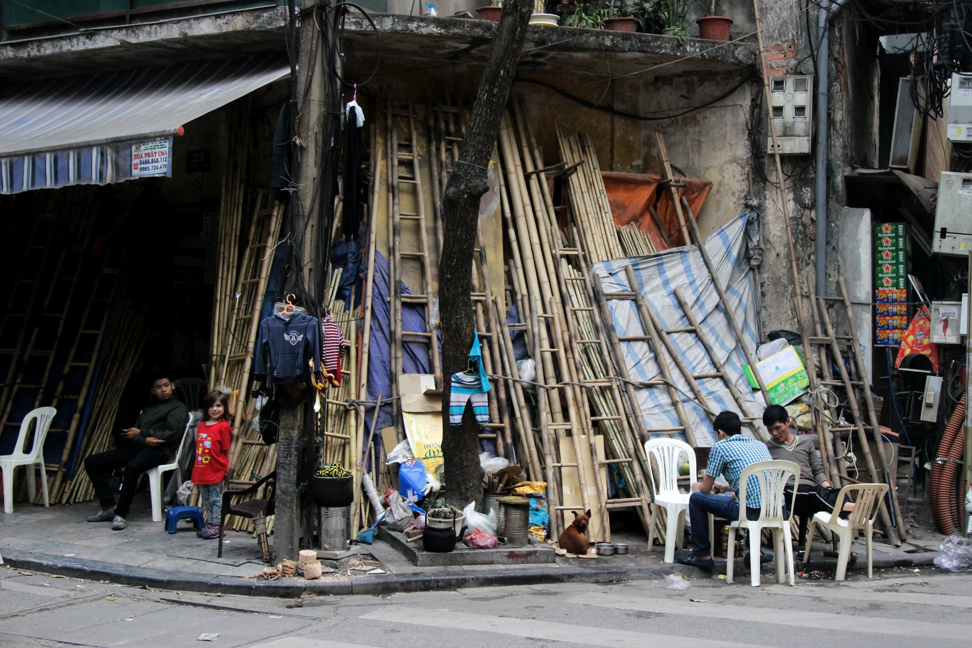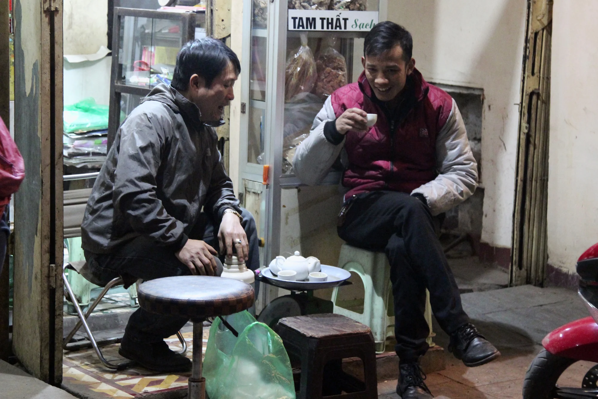 We are in Vietnam and this is not unusual. As we walk through the busy streets in the centre of the northern city, little improvised kitchens start appearing on pavements like mushrooms after the rain, blending in happily with the countless street food stalls.