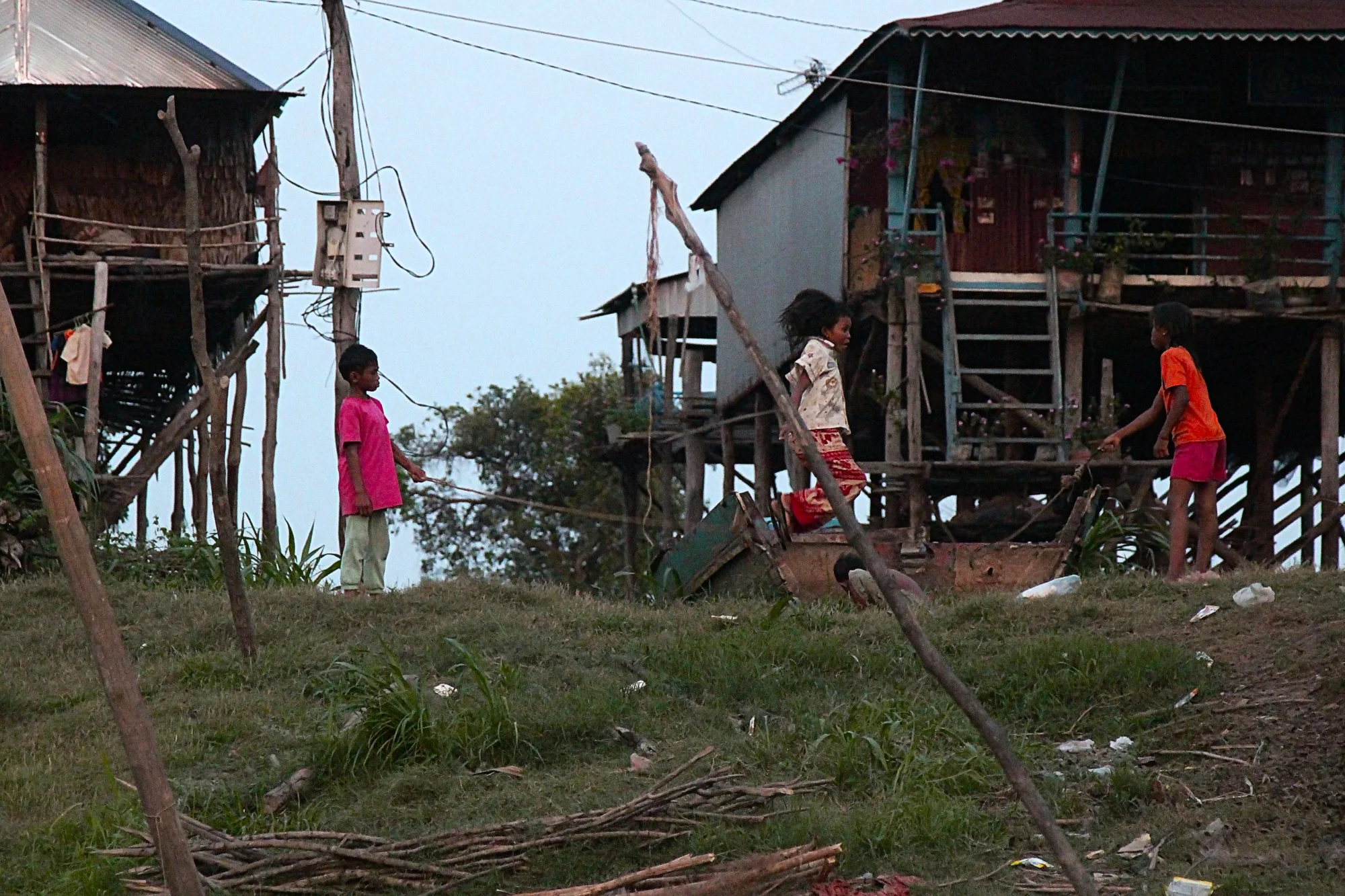 A girl, no more than six, is staring us straight in the eye from the muddy riverbank. She watches the boats go by in silence — her television for the day, her non virtual reality. Her house towers above her on spindly legs, waiting for the water to return. This is the stilted village of Kampong Phluk. And this is her life.