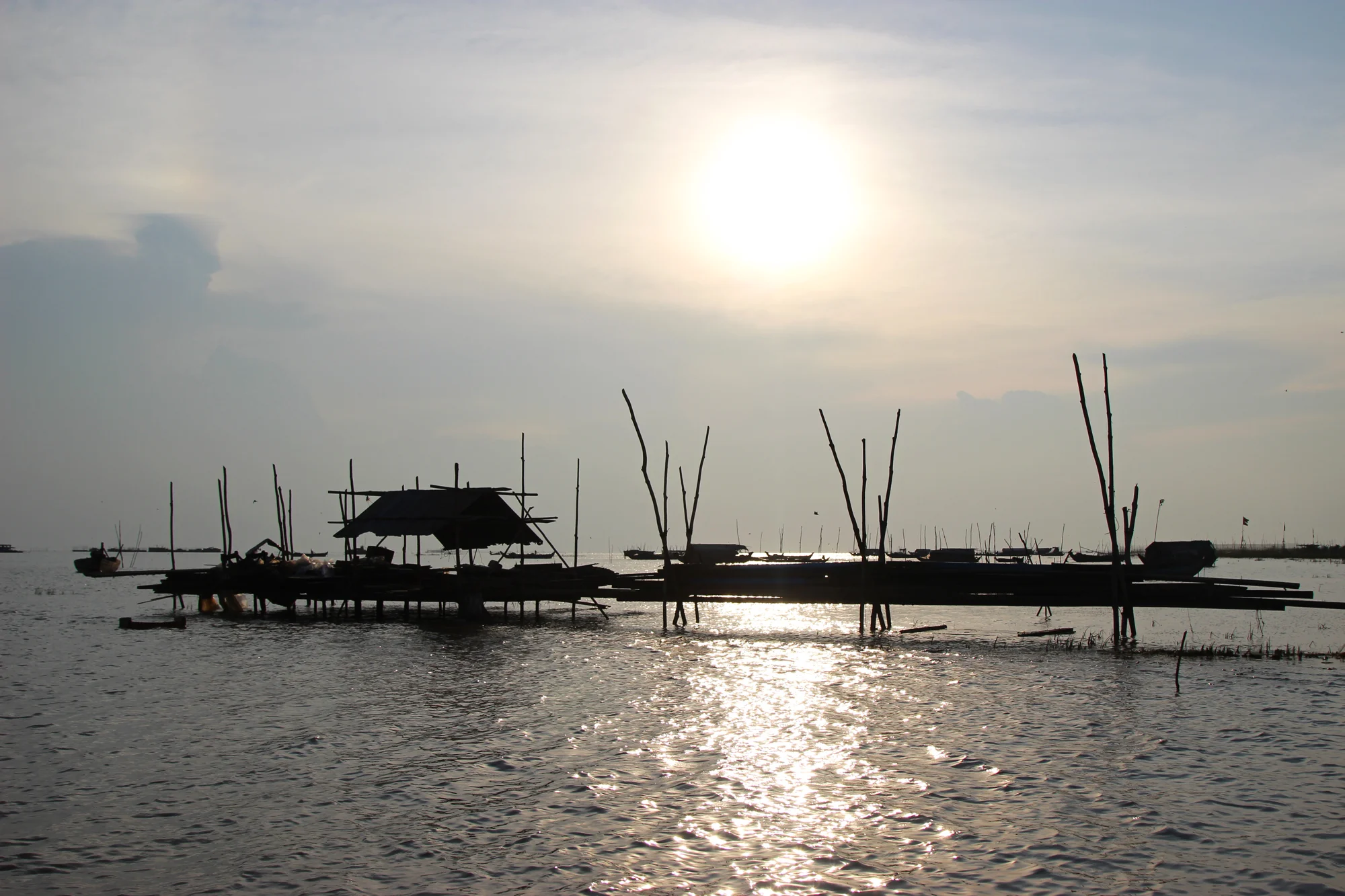 Tina, our tuk tuk driver, who dreams big and studies Japanese while waiting for us to get our acts together, has driven us out through dusty air and juddering road to Tonle Sap. The largest freshwater lake in South East Asia is a spectacle in itself, all glittering surface and huge skies. It’s a welcome break from the heat and crowds of Angkor Wat, but that’s not what we’re here for. We’ve come to see how a community lives out their lives in the strangest of circumstances.